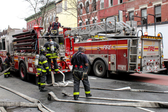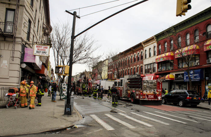 A whopping 106 smoke eaters rushed to quell the fire that erupted inside the building between Park and Sterling places at 11:11 am, and New York’s Bravest managed to smother the inferno by 12:17 pm.