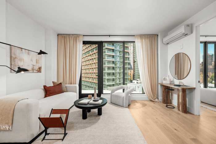 Market-rate leasing started in May, StreetEasy shows. Current listings include a studio for $3,190 and a one-bedroom for $3,995 a month.