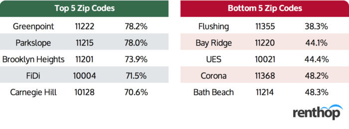 Greenpoint, Park Slope, and Brooklyn Heights received the highest percentage of PPP loans out of any neighborhood in the city, with between 73 and 78 percent of businesses laying claim to a federal loan. Meanwhile, only 44 percent of businesses in Bay Ridge and 48 percent of businesses in Bath Beach received the funds — the second and fourth lowest numbers in the city.