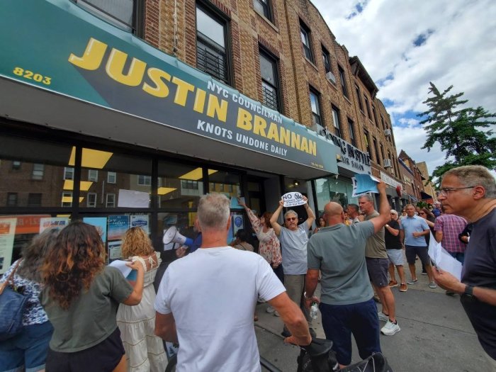 After the June 24 rally dispersed, several protesters marched to the district office of Democratic Council Member Justin Brannan. Reacting to the protest on X (formerly Twitter), Brannan said the conduct of the protestors was unacceptable.