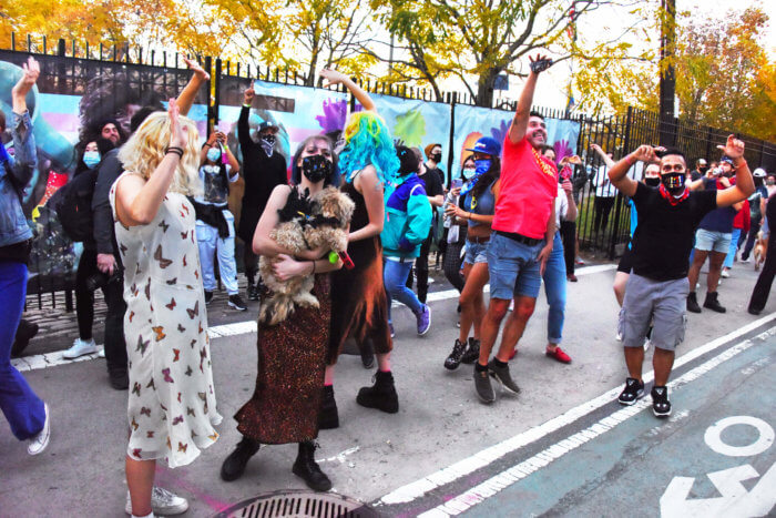 The group started at Domino Park in Williamsburg before moving on to Marsha P. Johnson State Park and then McCarren Park in Greenpoint.