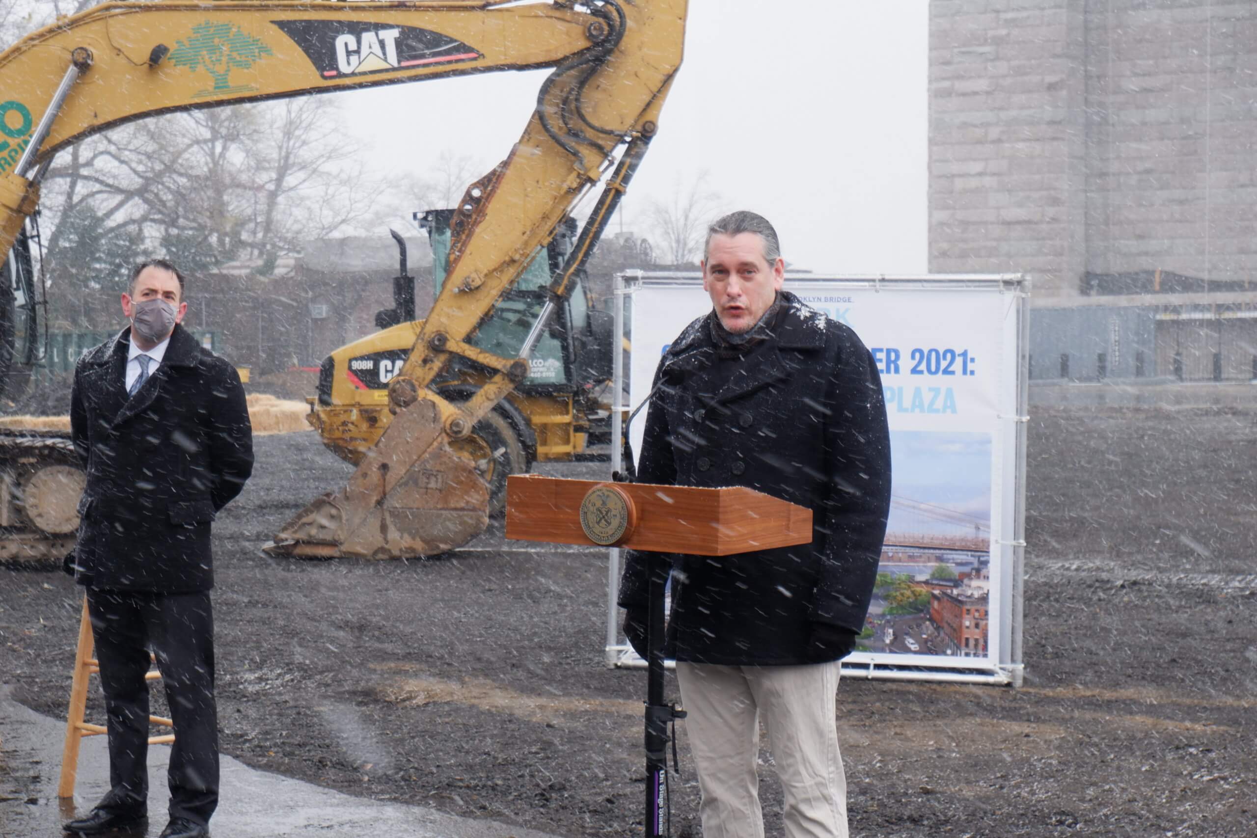 “We are proud to announce that we will be naming this final section of the park officially as Emily Roebling Plaza,” said Brooklyn Bridge Park president Eric Landau at a groundbreaking ceremony at Water and New Dock streets on Dec. 9.
