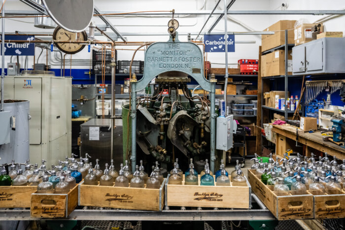 Kenny Gomberg — also of generational seltzer fame — hosted a pre-event tour of the factory and museum. The president of Brooklyn Seltzer Boys, the oldest seltzer factory in New York City, shared that only three seltzer bottlers are left in the United States. Now in its fourth generation, the company delivers seltzer, hand-filled in antique glass bottles, to businesses and private homes. Besides the environmentally friendly impact, the personal delivery of seltzer in glass bottles comes with a nostalgic factor.