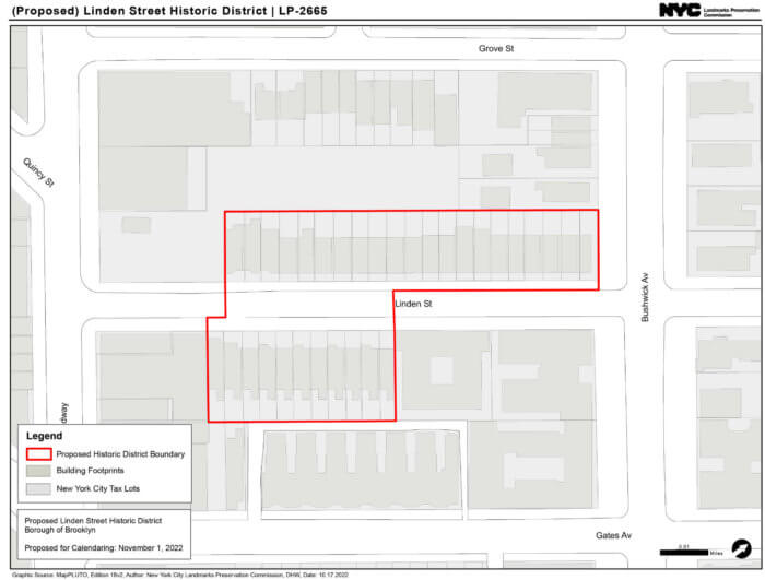 “Linden Street between Bushwick Avenue and Broadway stands out as one of the architecturally and historically significant residential areas in Bushwick. It represents an impressive streetscape and illustrates the first wave of widespread row house settlement during the 19th century,” Hurley said to the commissioners, before recommending they vote to consider it “based on this high quality of the architectural design and level of integrity that contribute to the proposed district’s sense of place.”