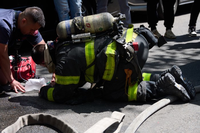 Firefighters Jose Cordero from Engine Company 257 began CPR on the feline and administered oxygen, after which the cat let out a meow. Onlookers cheered the firefighter’s efforts.