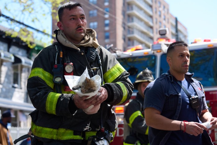 Tower Ladder 170 responded to the blaze just after 1 p.m. on April 25 and discovered the cat while searching a smoke-filled apartment on the building’s second floor. The family’s furry feline was unconscious and covered in soot and ash.