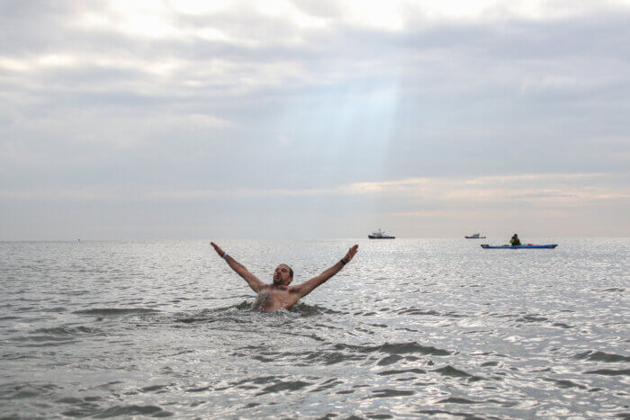 Another member of the first-timer’s club planning to return next year was Josh North from Brooklyn, who made the day-of decision to wash away the cobwebs of 2023, finding the water “brisk and invigorating.”