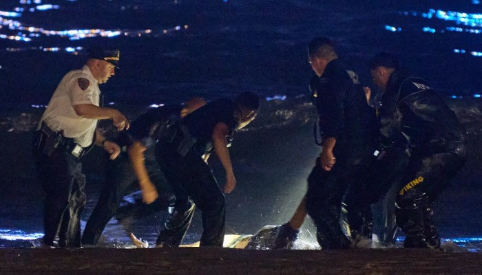 NYPD Harbor Officers from Special Operations and FDNY personnel responded and began the prolonged search and rescue, lining the shore with spotlights looking for the teen swimmers.