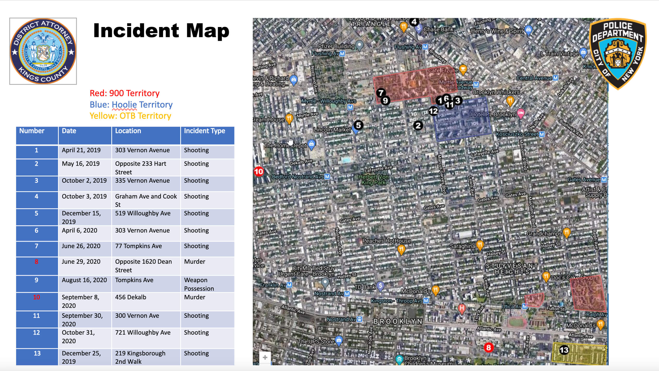 On Oct. 2, 2019, along Vernon Avenue near Marcus Garvey Boulevard — a border between two rival gangs, according to investigators — two men shot at a guy allegedly from another criminal group walking out of a bodega, hitting him in the leg.