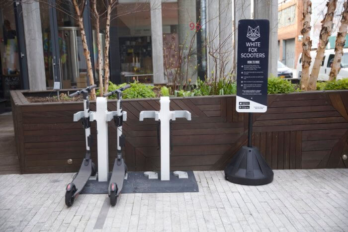 Unlike dockless e-scooters that have popped up in other cities, White Fox requires riders to park the two-wheelers at various docking ports around the borough — similar to the Citibike bike sharing program.