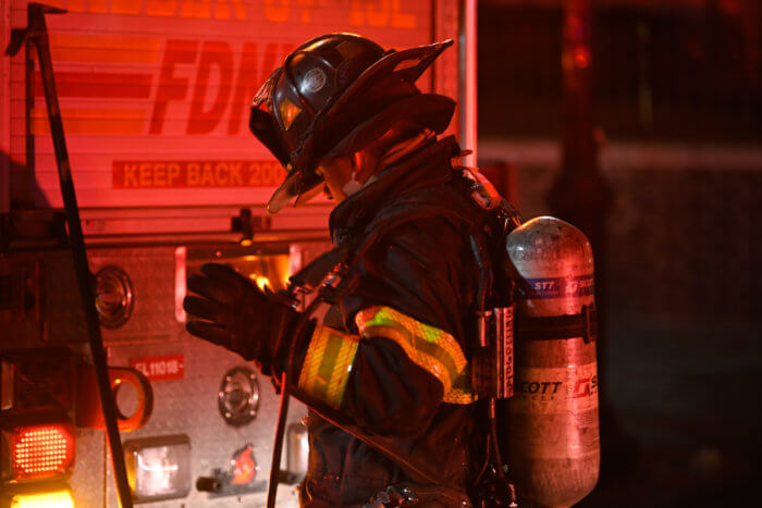 The fire was put under control at about 5:52, the department said; two patients were transferred to Methodist Hospital for evaluation. The Department did not release information on the patients’ condition or of the apartments involved in the conflagration, though the look of things through a window firefighters broke through painted a scene of heavy damage.