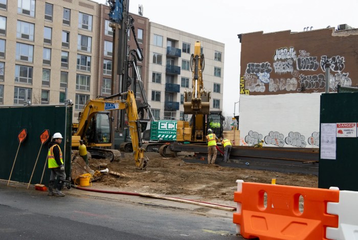 When Brooklyn Paper’s sister site Brownstoner stopped by 133 Kent Avenue earlier this week, the site was a hub of activity. About a dozen workers were on site with a pile driver, concrete truck, and other machinery. Department of Buildings records show permits have been approved for foundation and excavation work.