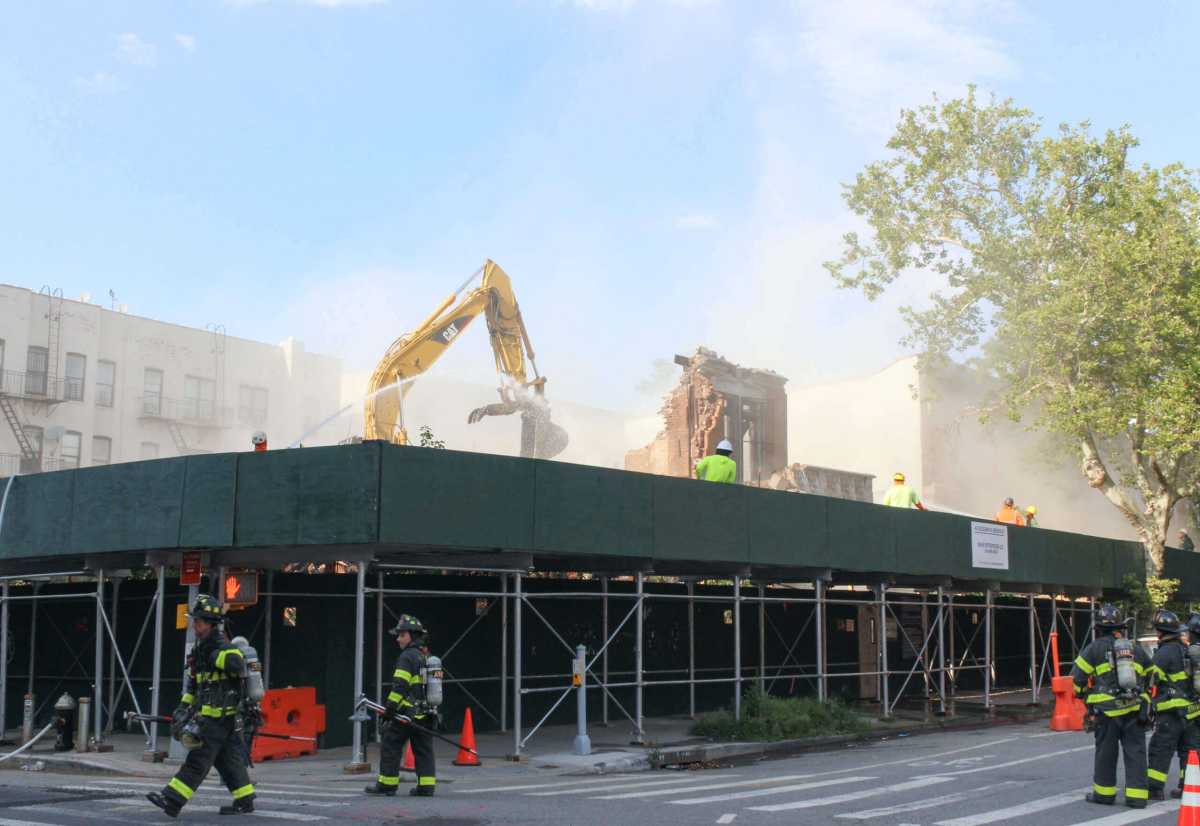 A mayor’s office spokesperson sent Brownstoner the following statement: “As the Landmarks Preservation Commission considered this building for potential designation as a landmark, the developer was able to legally obtain demolition permits. We will continue listening to and working with the community to help address any concerns about the future of this site.”