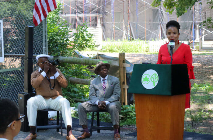 The stretch of the benches located near the Children’s Corner entrance was christened with the new name and an interpretive sign installed as part of the NYC Parks Renaming Project, which sought public input over the last year about honoring the Black experience in New York City’s green spaces.