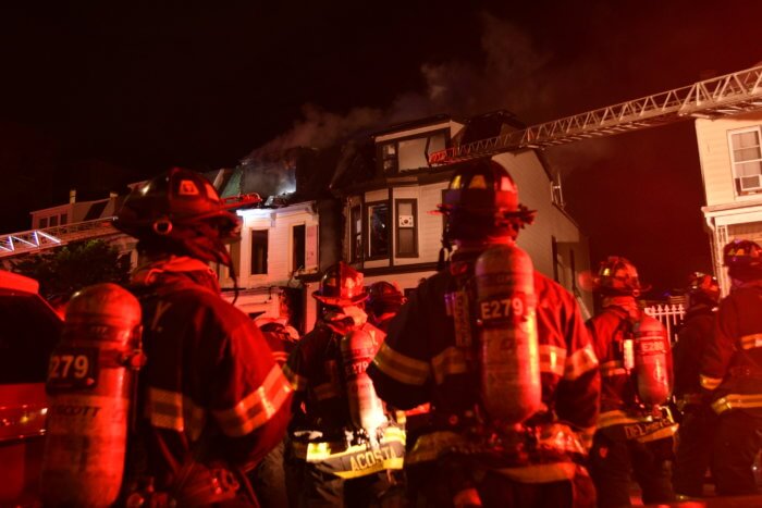 Firefighters arrived at at 382 E. Ninth St., between Avenue C and Cortelyou Road, just before 4 am to find heavy fire emitting from the second and third floor of two private, attached residences.