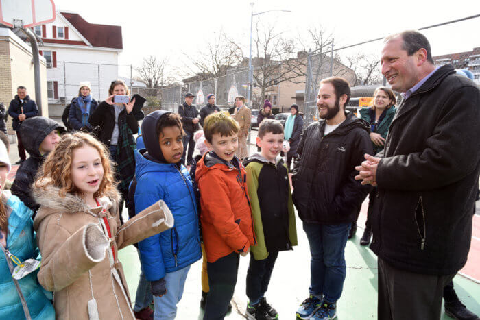 Windsor Terrace elementary schoolers broke ground on a student-led playground improvement project on Thursday — bringing smooth, safe grounds to a schoolyard that was previously riddled with cracks and bumps, according to councilman Brad Lander (D—Windsor Terrace), who funded the project through his participatory budgeting process.
