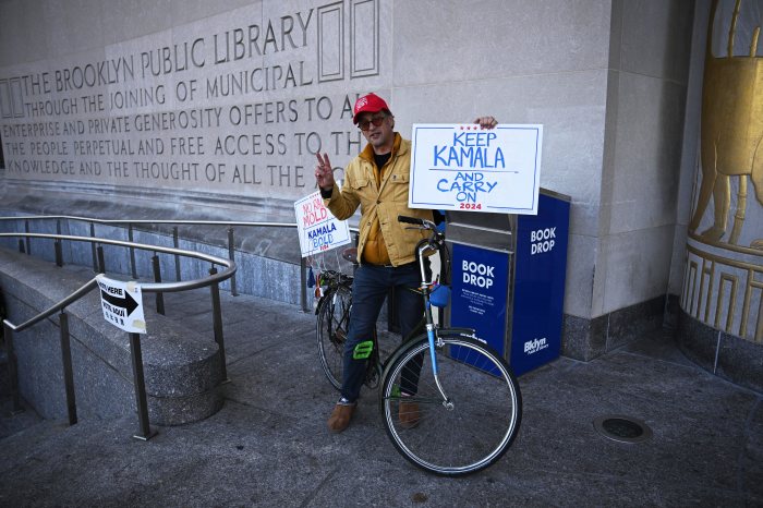 Still, others vowed to “keep Kamala and carry on,” as one sign read outside the Brooklyn Public Library.