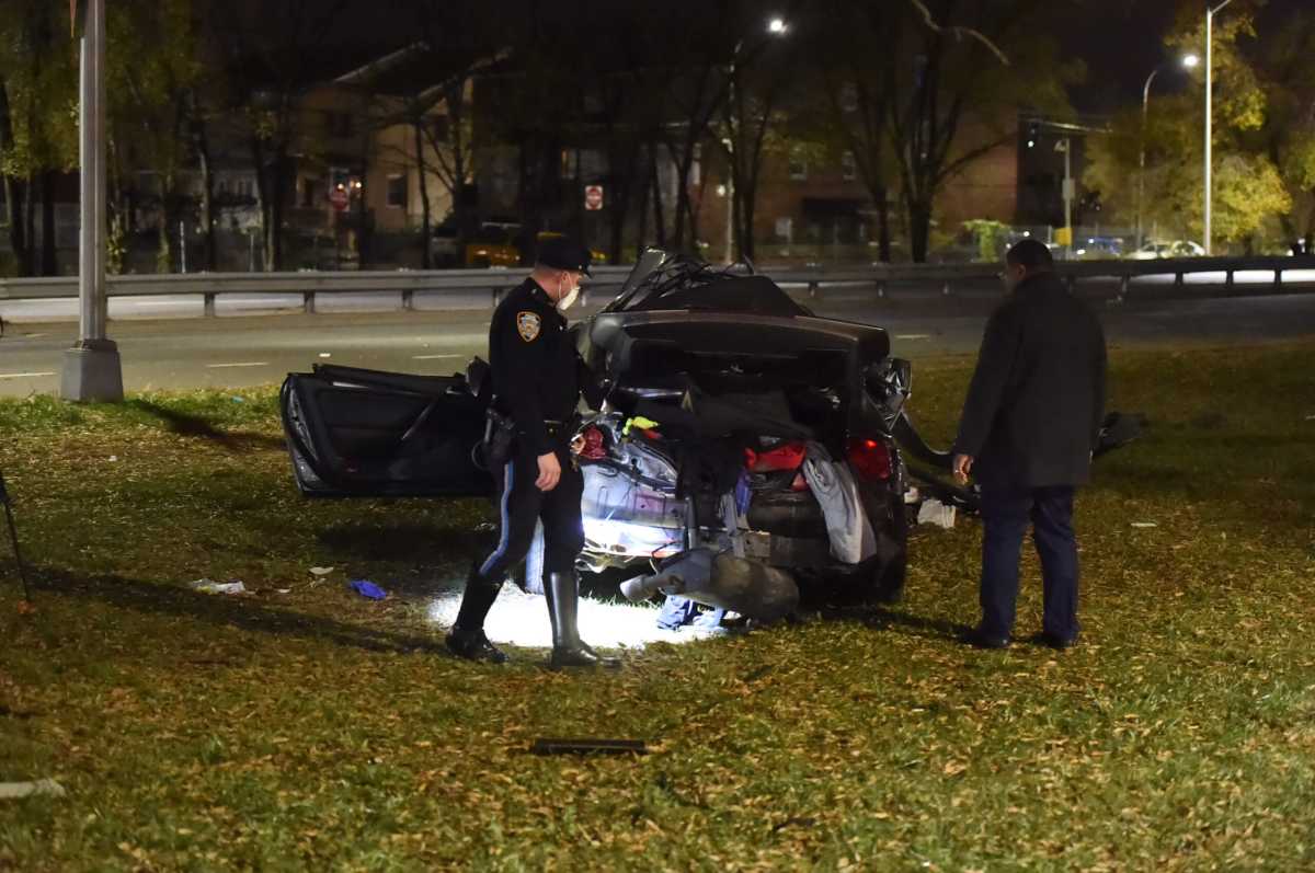 The crash occurred at around 12:21 am on Nov. 22, when the driver of a recent model Infiniti traveling westbound at a high speed veered off the parkway just past Exit 9 at Knapp Street in Sheepshead Bay and struck a large tree — tearing his car into pieces.