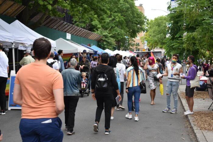 There was no twilight march, but a sizable crowd still showed up for a lively neighborhood street festival on June 12 to celebrate Brooklyn Pride.