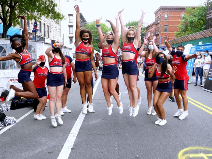 Cheerleaders from Cheer New York dazzled with backflips and a dance routine, while several bands such as Control the Sound — a group of teenagers — played songs in front of the crowd. Folks also huddled around drag queen Marilyn Monhoe as she interacted with folks in attendance.