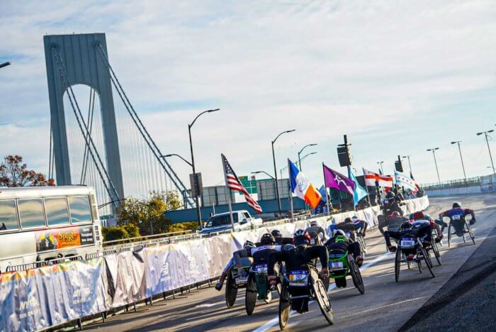 The first wave of professional wheelchair division, hand cyclists, and runners slogged across the bridge and into Brooklyn, then Queens, crossing the Ed Koch-Queensboro Bridge into Manhattan, looping around Wills Avenue in the Bronx, and then back down in Manhattan toward Central Park.