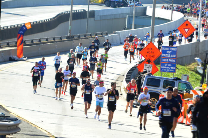 Beginning at 8 am with the male and female wheelchair racers respectfully, the 50th TCS New York Marathon launched with the sound of cannon fire from the Veteran Corps of Artillery Institute (formed on Nov. 25, 1790), which served as the starting gun. Charging, the marathoners broke off into the early morning sun with the iconic bridge serving as both their backdrop and initial goal.