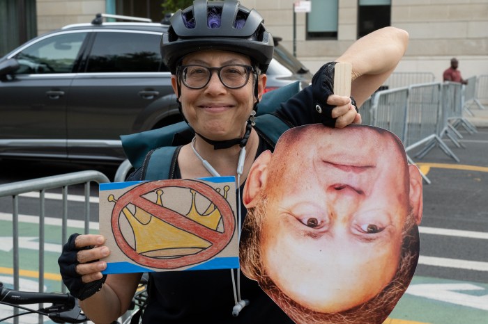 A day after the Supreme Court’s 6-3 ruling that Donald Trump — and future presidents — are immune from prosecution for any of their official acts in office, activists with Indivisible Brooklyn and Rise and Resist gathered for a rally at Grand Army Plaza, where they called on Sen. Chuck Schumer to expand the Supreme Court.