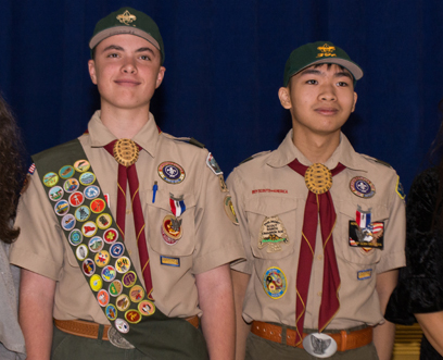 Luke Feeney and Marchus Chan were awarded the notable rank at the Resurrection Church in Gerritsen Beach with around 30 people in attendance, according to Woo. The church is a sponsor of the troop, and hosts their weekly meetings, Woo said.