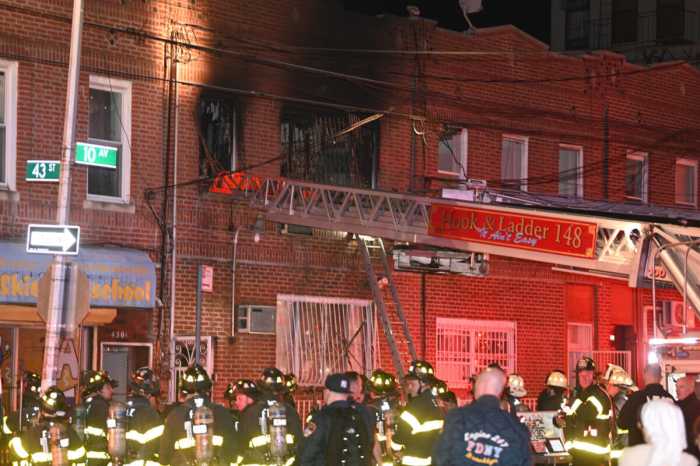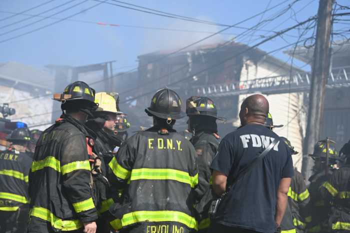 After the fire was extinguished, paramedics rushed two civilians to Woodhull Hospital, and one firefighter was treated for minor injuries on the scene, according to the FDNY.