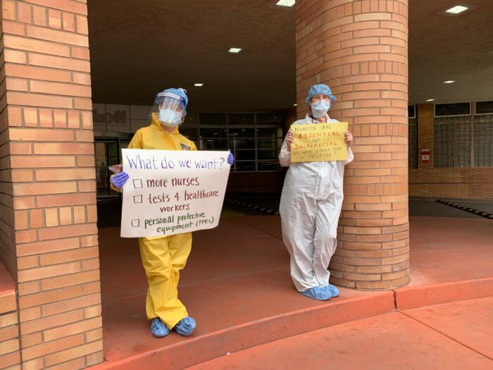 Friday’s protesters demanded that Governor Andrew Cuomo fast-track distribution of tests and protective equipment to the hospitals hardest hit by the health crisis, and for President Donald Trump to authorize the Defense Production Act, which would allow the federal government to force private companies to produce medical equipment to combat the pandemic.